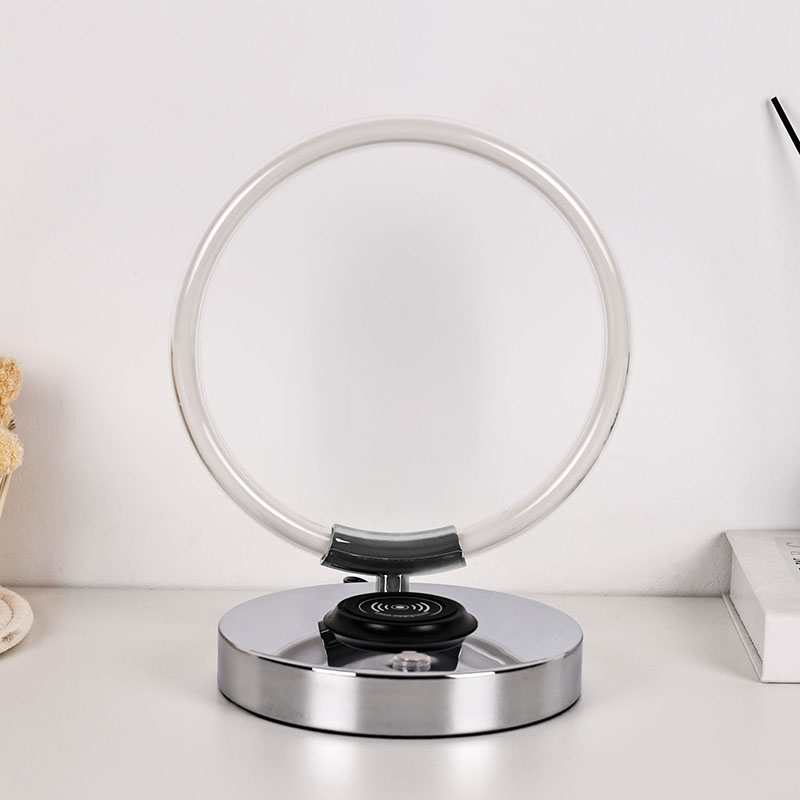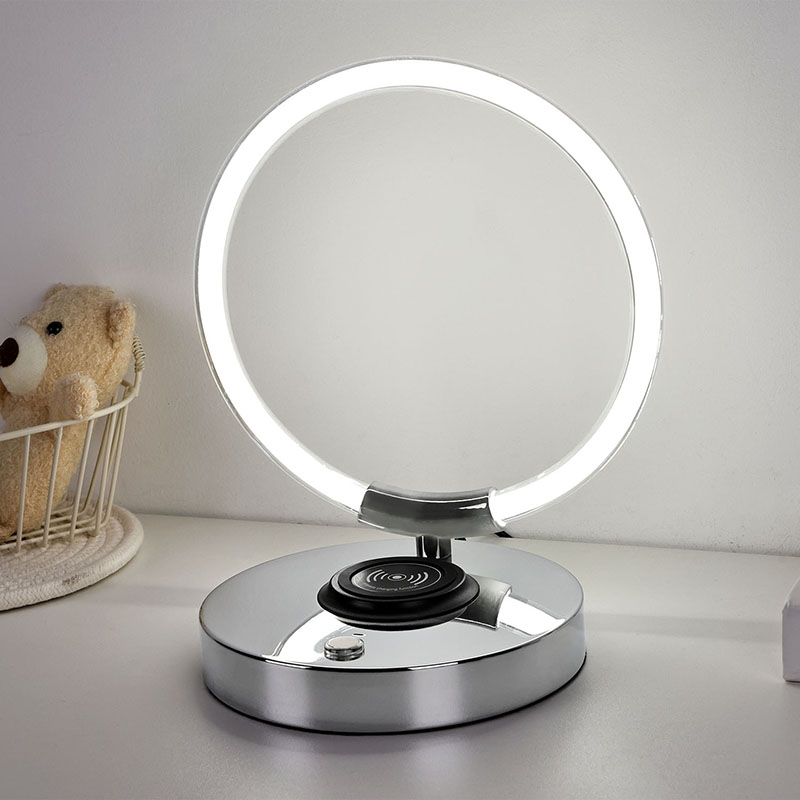 360 Derece Aydınlatma Halka Şekilli Kablosuz Şarj Cihazıyla LED Masa Lambası.