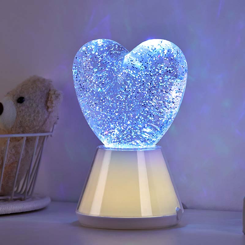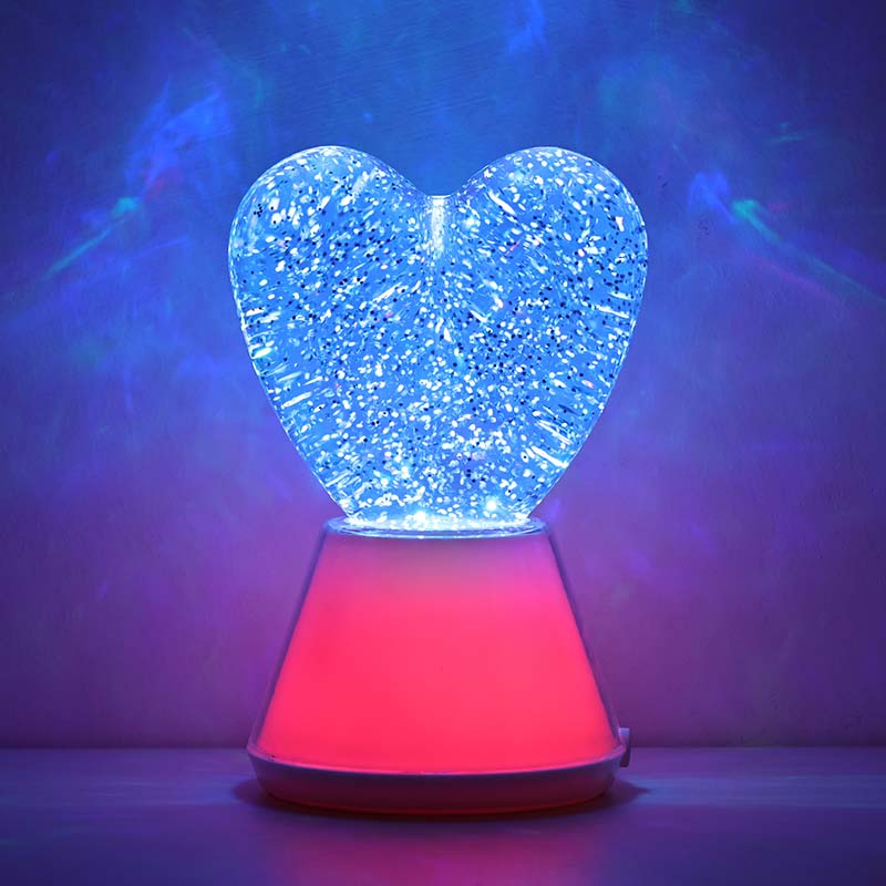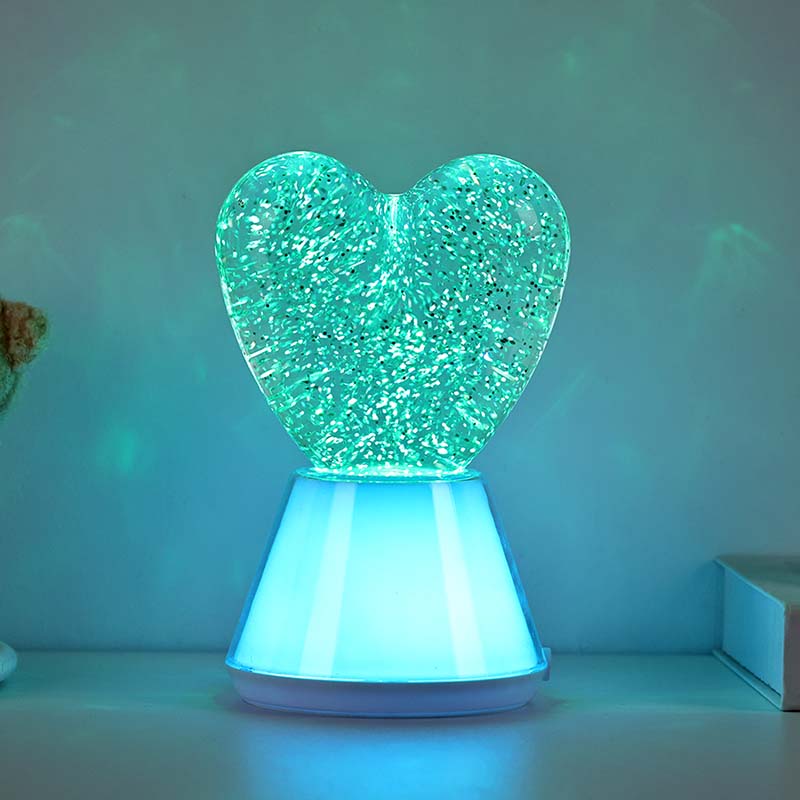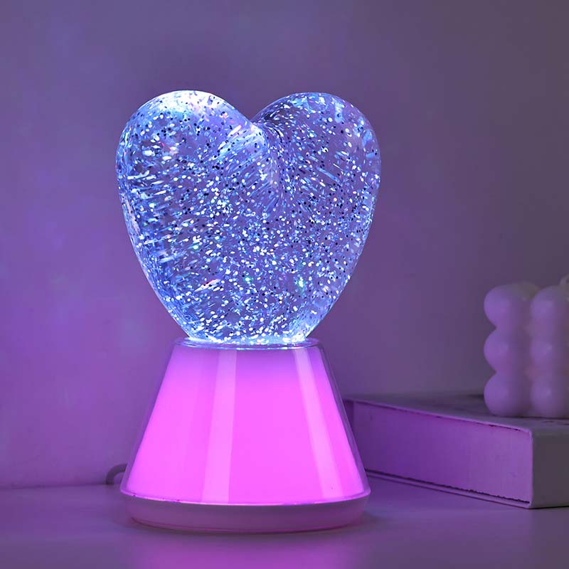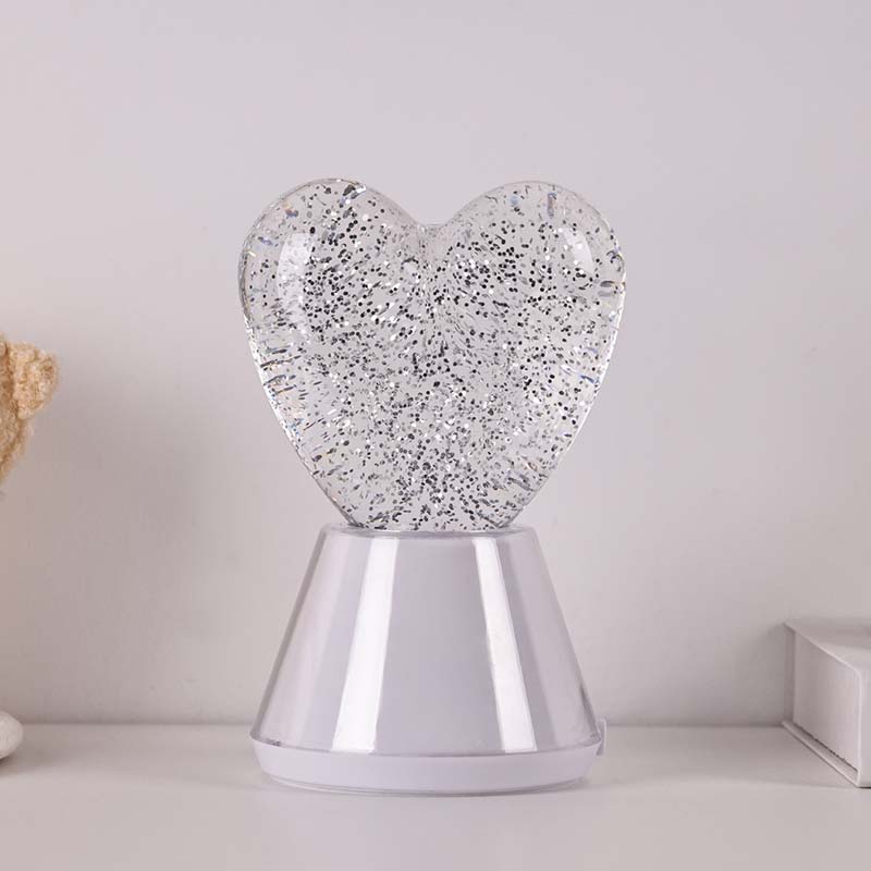 Kalp Gölgeli Renk Değiştiren Sıvı Parıltılı Gece Lambası. içinde parıldayan payetlerin yüzdüğü gizemli bir sıvıyla dolu zarif bir cam küre içerir. Mucizevi bir şekilde, Kalp Gölgeli Renk Değiştiren Sıvı Parıltılı Gece Lambası sanki büyülü bir dünyada dans ediyormuş gibi.
