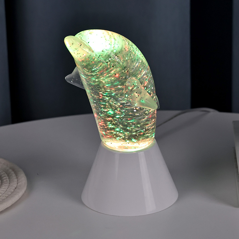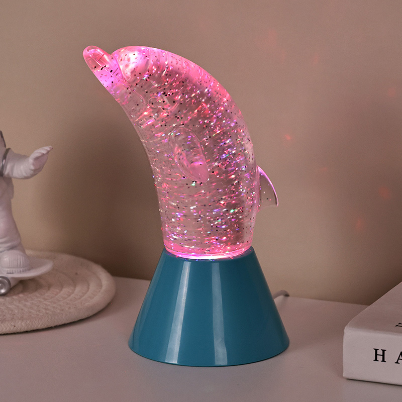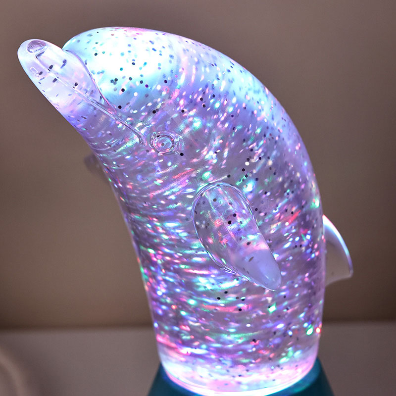 Dolphin Kid Gift Glitter RGB Gece Işığı, yunusların çevik duruşunu mükemmel bir şekilde geri kazandıran pürüzsüz çizgiler ve zarif ayrıntılarla sevimli bir yunus şeklinde tasarlanmıştır. Şeffaf yunus kabuğunun içinde, pul şeklinde, düzensiz hareketler renkleri güzel bir şekilde yansıtarak huzurlu ve gizemli bir atmosfer yaratabilir. Bu lambaya her baktığınızda, sanki derin bir okyanustaymışsınız gibi hissedersiniz. Bunların arasında doğanın sonsuz cazibesini hissedin. Gelişmiş RGB renk değiştiren aydınlatma teknolojisiyle donatılmış olup, birden fazla renk arasında özgürce geçiş yapmanıza olanak tanır. İster sıcak turuncu, ister romantik pembe, isterse sakin mavi olsun,