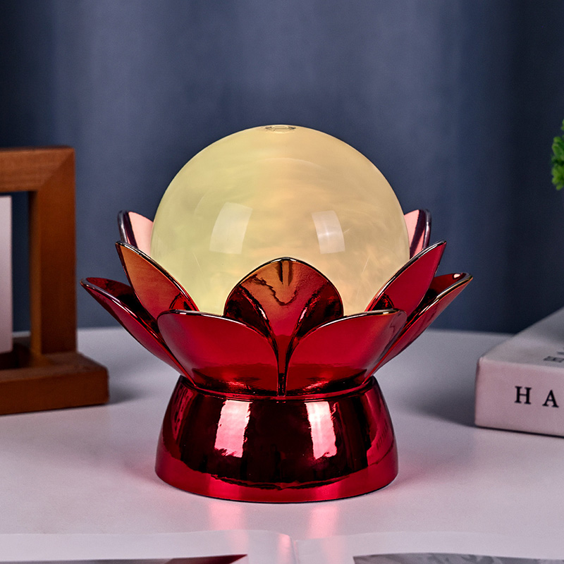 Yüksek kaliteli malzemelerden üretilen taban, ışığı güzel bir şekilde yansıtan, görünümüne derinlik ve zenginlik katan çarpıcı kırmızı-altın kaplamalı cilalı metalden yapılmıştır. Lotus tasarımı yalnızca estetik bir odak noktası olarak hizmet etmekle kalmıyor, aynı zamanda kökleri Doğu geleneklerine dayanan, aydınlanmayı, dayanıklılığı ve uyumu temsil eden sembolik bir anlam da taşıyor. Yansıtıcı yüzey görsel etkiyi artırarak lambanın düşük ışıklı ortamlarda bile parlamasını sağlar.