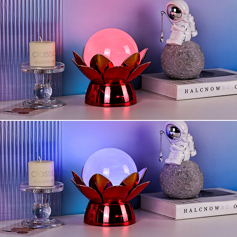 Kürenin içinde gelişmiş LED aydınlatma, çok renkli aydınlatma sunarak kullanıcıların sıcak beyaz, hafif pembe, sakinleştirici mavi ve altın sarısı gibi yumuşak tonlarla ortamı kişiselleştirmesine olanak tanıyor. Renk değiştirme özelliği manuel olarak kontrol edilebilir veya otomatik olarak döngüye ayarlanabilir, böylece zaman içinde gelişen dinamik ve büyüleyici bir görüntü sağlanır. Bu ortam aydınlatması yatak odaları, oturma odaları, yoga alanları için veya güzellik ve huzuru takdir eden sevdikleriniz için düşünceli bir hediye olarak idealdir.