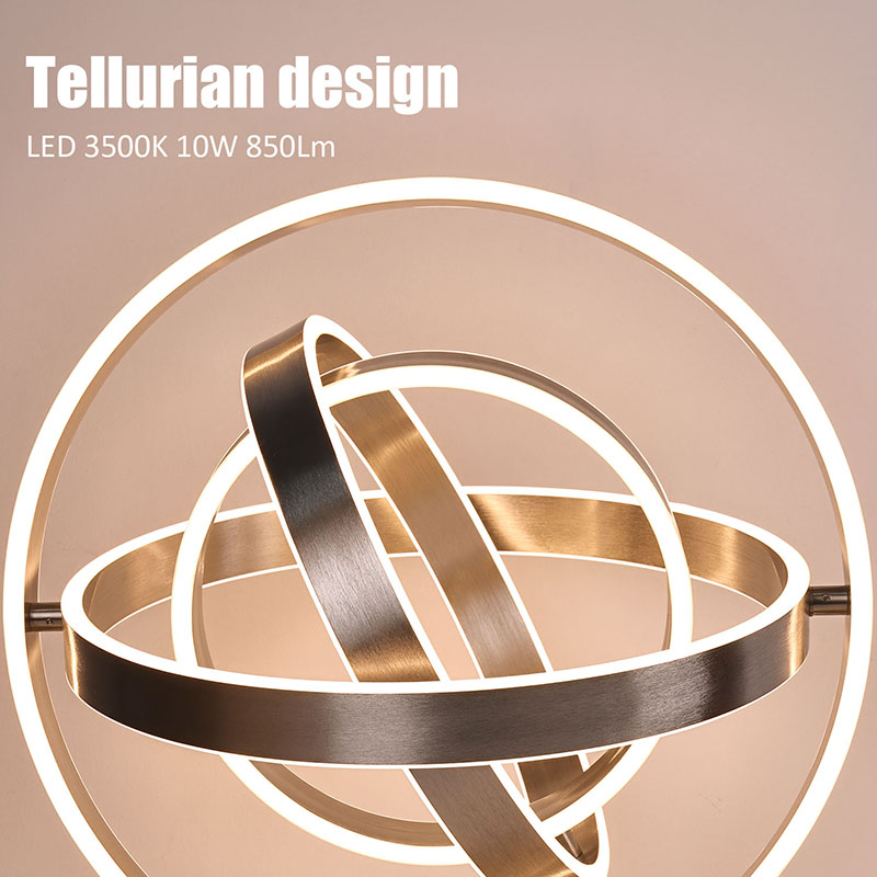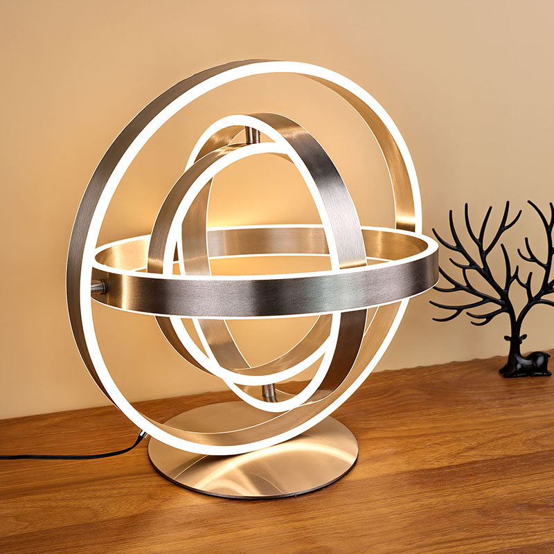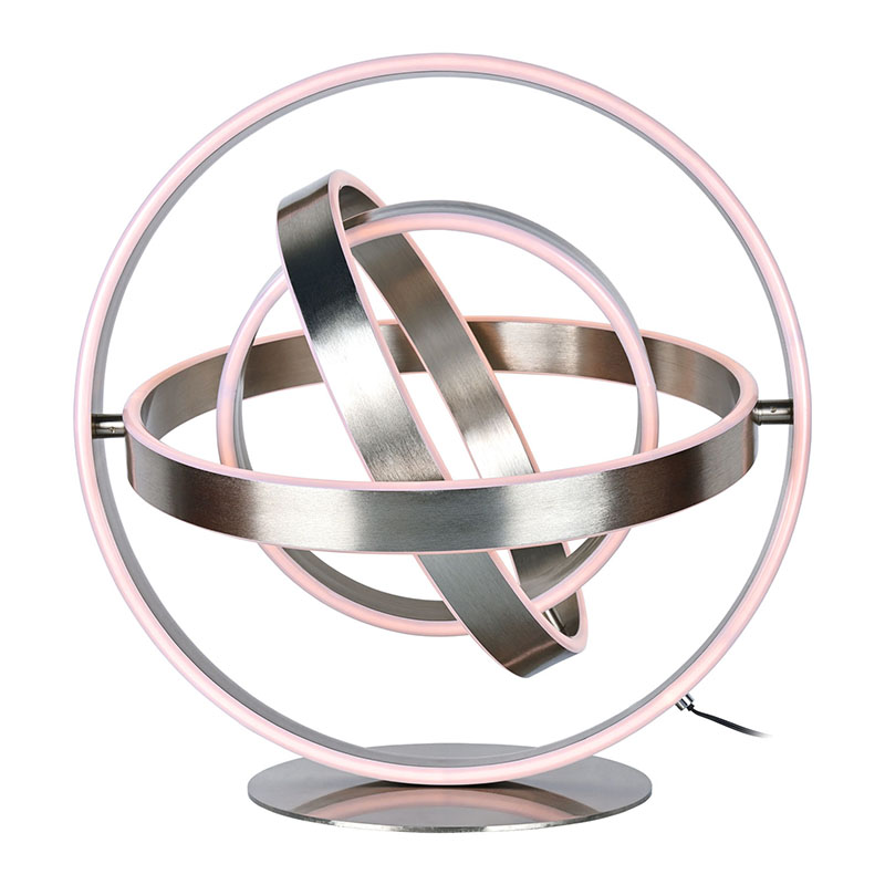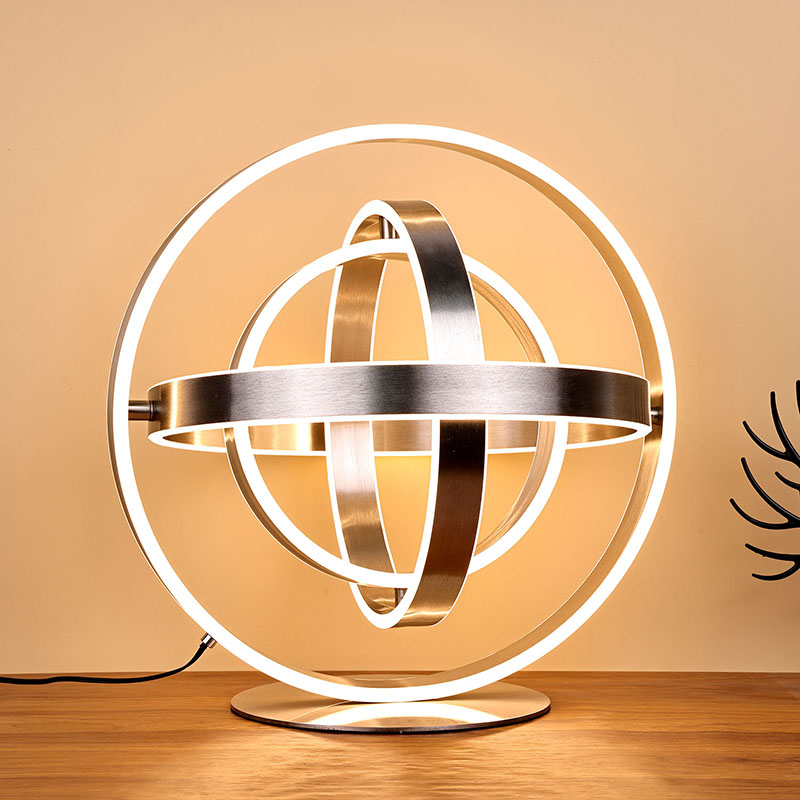 The zarif led masa lambasıher bir halka şeklindeki çevreye kesilmiş LED ışıklara sahip çok sayıda halka şeklindeki LED lambadan oluşur. Halka şeklindeki tasarım, küresel bir şekle dönebilir