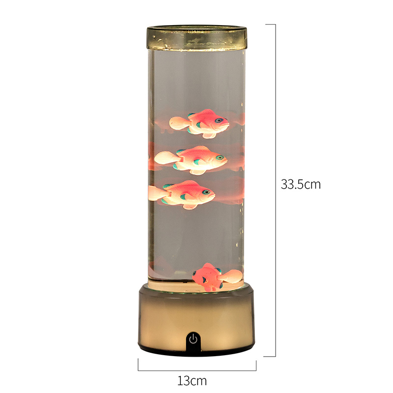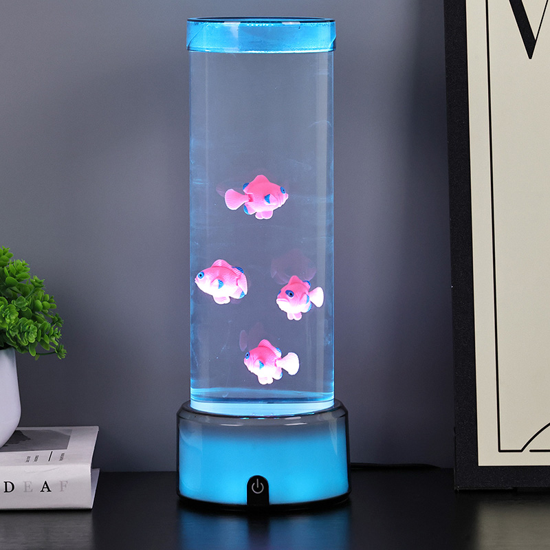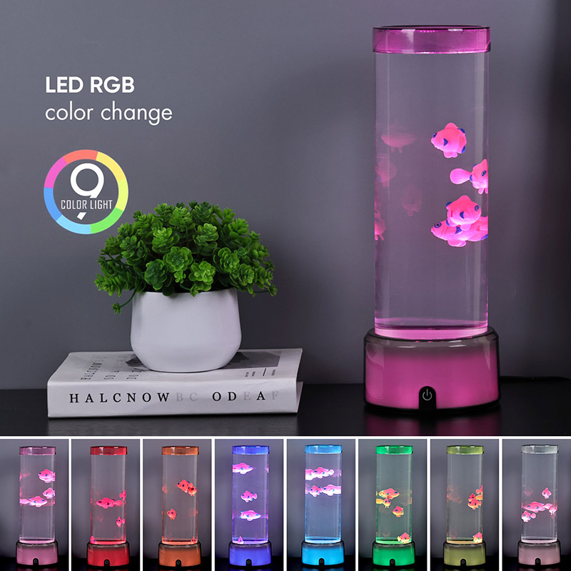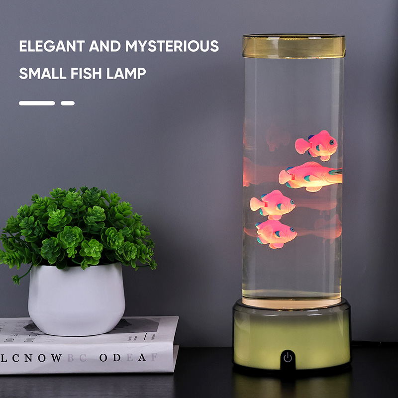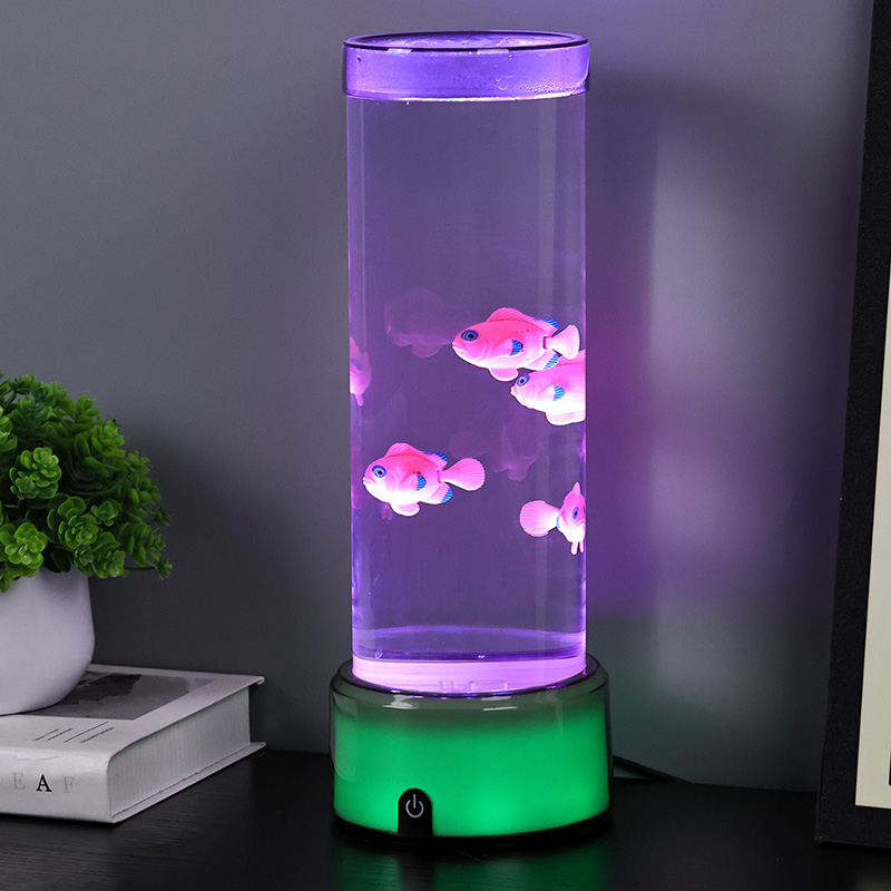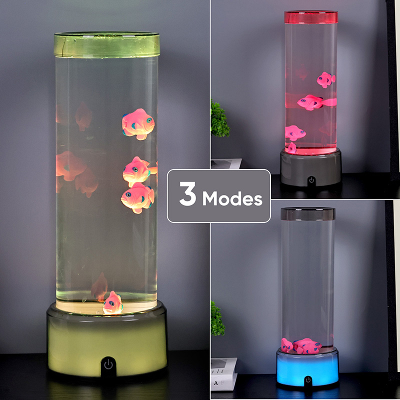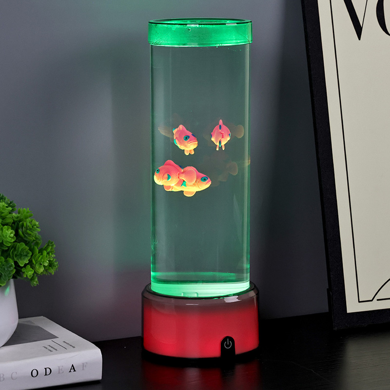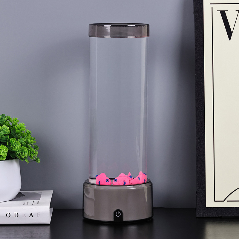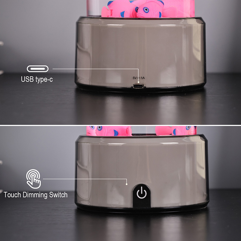 Dokunmatik seçim düğmesi ve Denizanası yüzmesiRGB Tabanlı Denizanası Balık Lambası Dekoratif Lamba, silindirik su tutma tasarımıyla yeni tasarlanmış bir çocuk izleme oyuncağı. Suyla doldurulduktan sonra içine üç küçük balık yerleştirilir. RGB Tabanlı Denizanası Balık Lambası, alttaki küçük motor döndüğünde yukarı ve aşağı yüzebilir. Aynı zamanda tabanda RGB renk dönüşümü bulunmaktadır. Bu ürünün en büyük özelliği renk dönüşümü ile bazın da değişmesidir. Tamamen plastik tasarım, su tutmadan çok hafiftir, bu da taşıma için çok uygundur. Balık lambasının güç kaynağı, çok uygun olan USB C tipi düşük voltajla sağlanır.