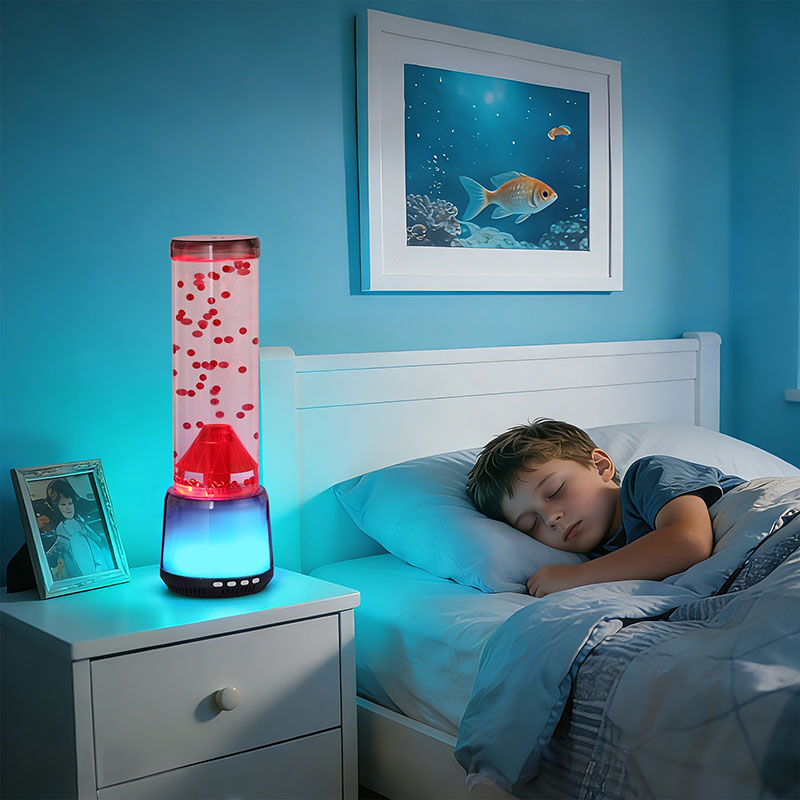 Kırmızı renkli kabarcıkların sürekli olarak yükselip alçaldığı dinamikler, erimiş lavların doğal akışını veya denizanasının okyanus akıntıları boyunca yavaşça sürüklenmesini taklit eder. Bu hipnotik etki sakinleştirici bir etki yaratır