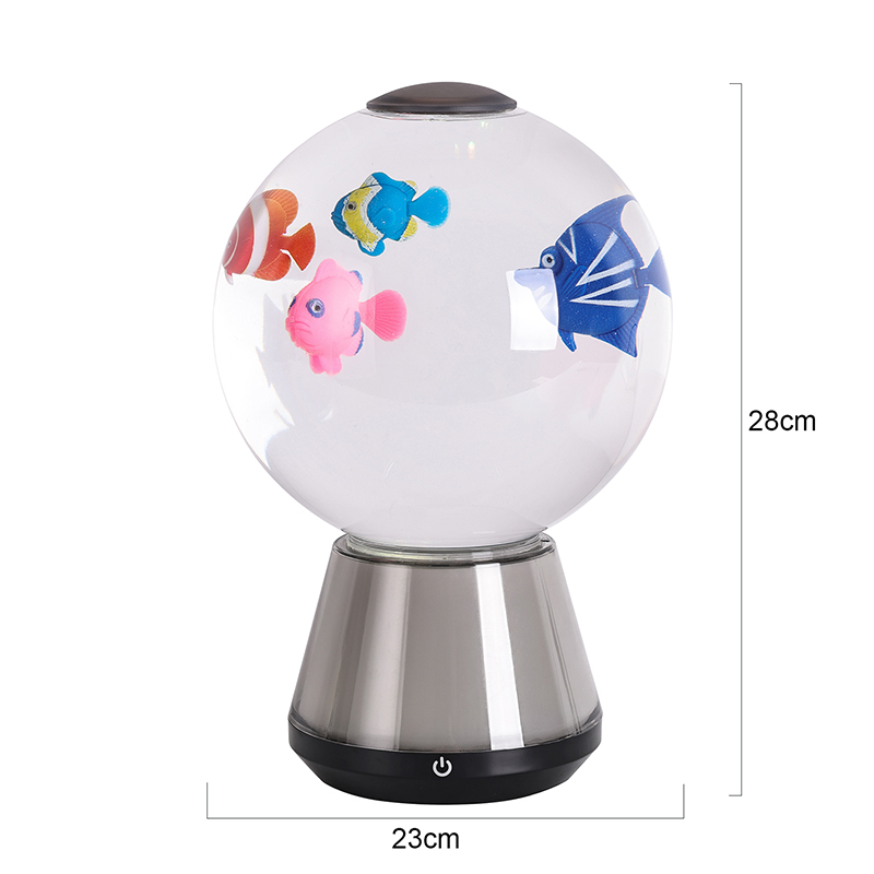 Merkez parçası, su altı hareketi yanılsamasını artıran yumuşak, yavaş hareket eden bir sıvıyla doldurulmuş şeffaf silindirik bir tanktır. İçeride, gerçekçi hatlar ve ince ayrıntılarla hazırlanmış karmaşık tasarımlı minyatür köpekbalığı figürleri, dahili LED'lerle aydınlatılan yumuşak, akıcı denizanası şeklindeki öğelerin yanında yumuşak bir şekilde dönüyor. Kombine hareket, okyanus yaşamının sessiz görkemini çağrıştıran dinamik ama sakinleştirici bir görsel ritim yaratıyor. İster işten sonra dinlenin, ister meditasyon yapın, ister bir çocuğun uykuya dalmasına yardım edin, bu lamba stresi azaltan ve merak uyandıran sakin bir duyusal deneyim sunar.