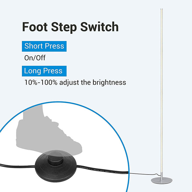 Kolaylık göz önünde bulundurularak tasarlanan LED zemin lambamız, kolay kullanım için bir ayak pedalına sahiptir. Lambayı açmak veya kapatmak için düğmeye basmanız yeterli; düğmeler veya anahtarlar aramak zorunda kalmadan aydınlatmayı kontrol etmek çok kolay. Bu düşünceli tasarım detayı genel kullanıcı deneyimini geliştirerek lambanın kullanımının mümkün olduğunca basit ve sezgisel olmasını sağlar.