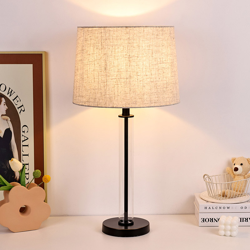 Midcentrury E26 E27 Kumaş Gölgeli Masa Lambası cam gölgelidir