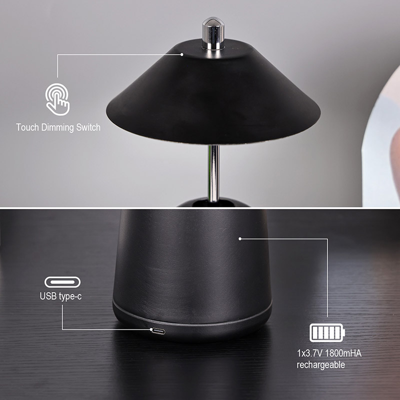 Yükseklik Ayarlamalı Modern Led Masa Lambasının ışığı, sıcak renkler ve 3000K'dan 6500K'ya kadar değişen üç ışık yoğunluğu seviyesiyle abajurun içine kesilir. Abajurun üst kısmında antene benzer bir dokunmatik anahtar bulunur. Taban düzensiz silindirik metalden oluşur