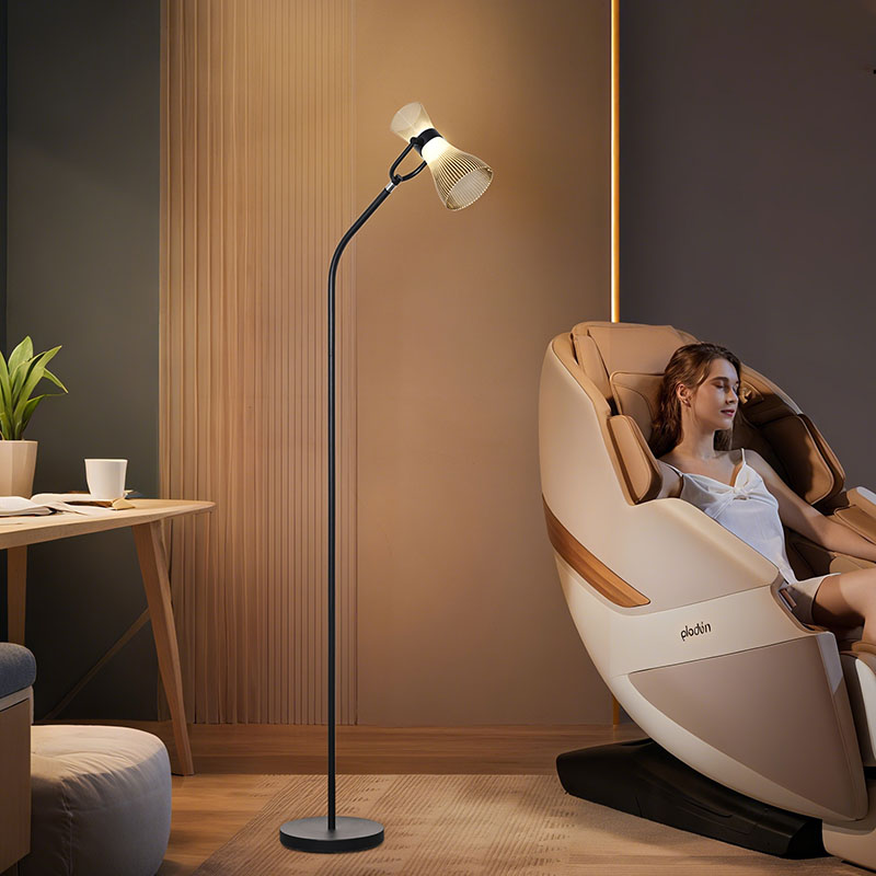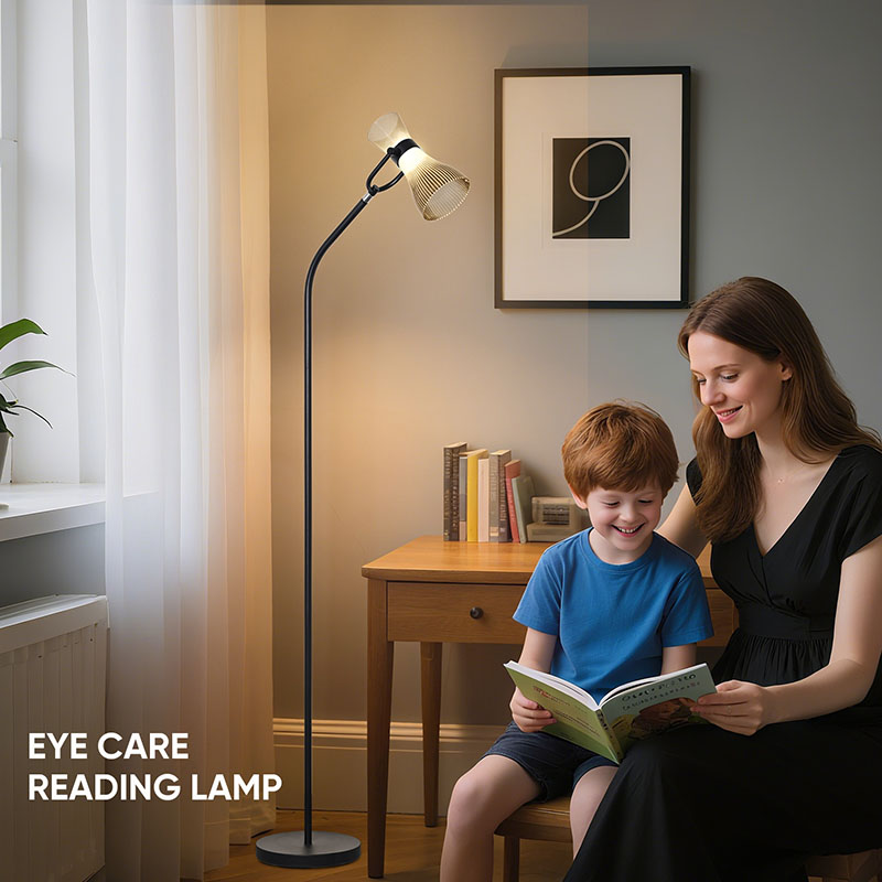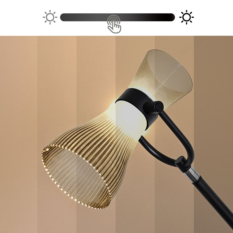 Cam gölgeli modern LED zemin lambası, yumuşak ve parlak ışık yayan, gözlerinizi etkili bir şekilde koruyan ve uzun süreli göz kullanımından kaynaklanan yorgunluk ve rahatsızlığı azaltan gelişmiş LED ışık kaynaklarıyla donatılmıştır.