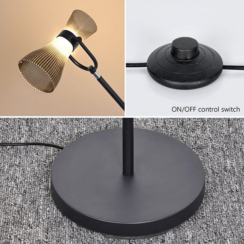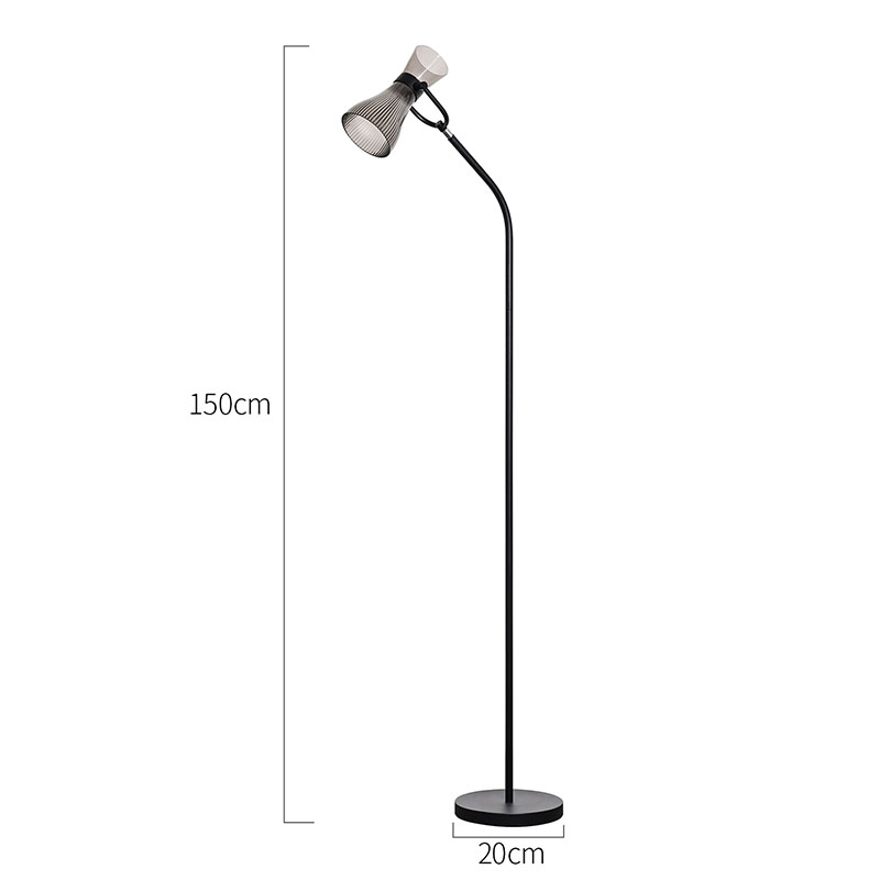 Ayak karartma anahtarıCam gölgeli modern LED zemin lambası, basit ama şık bir genel şekle sahip, minimalist bir tasarım konseptini benimsiyor. 150 santimetrelik yüksekliği ve 20 santimetrelik taban çapı, çok fazla yer kaplamadan yeterli varlığı sağlıyor. Metal çubuk ve taban, pürüzsüz ve hassas bir yüzeye sahip, ince bir şekilde parlatılmıştır.