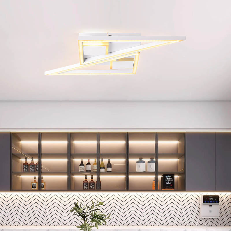 Modern Basit Tasarım Sıcak Hafif Metal Tavan Lambası, modern zarafet duygusu yayan kesişen düzlemler ve açılarla karakterize edilen çarpıcı bir geometrik tasarıma sahiptir. Tasarımın net çizgileri ve minimalist estetiği, onu çağdaş iç dekora mükemmel bir uyum sağlıyor. Lambanın esas olarak dayanıklı plastikten yapılmış yapısı, kolay kurulum için hafif profilini korurken uzun süreli performans sağlar.