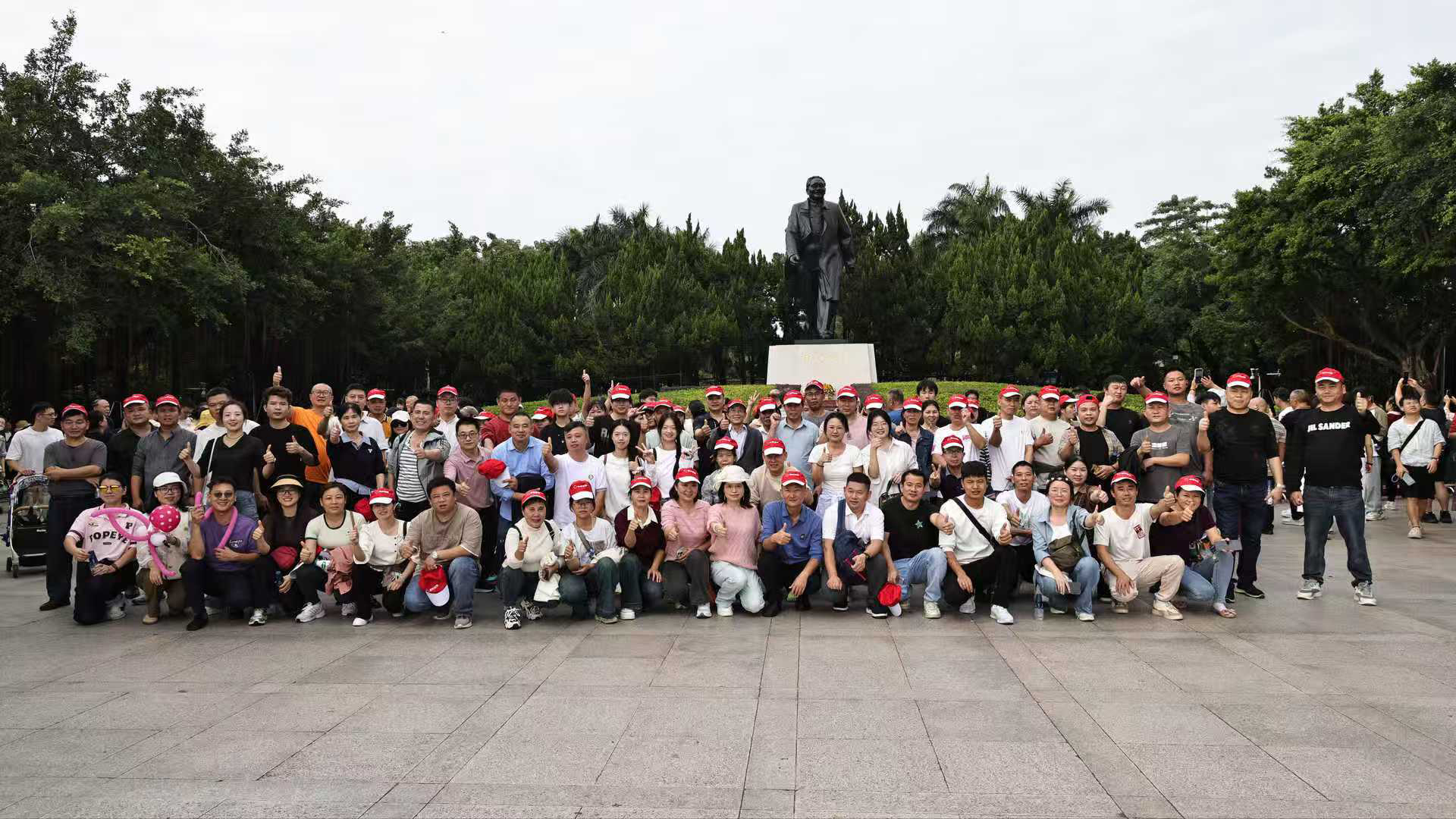 20 dakikalık tırmanışın ardından herkes zirveye ulaştı! Yoldaş Deng Xiaoping'in hareketli Shenzhen şehrine bakan bronz heykelinin önünde dururken duygularla doluyum.