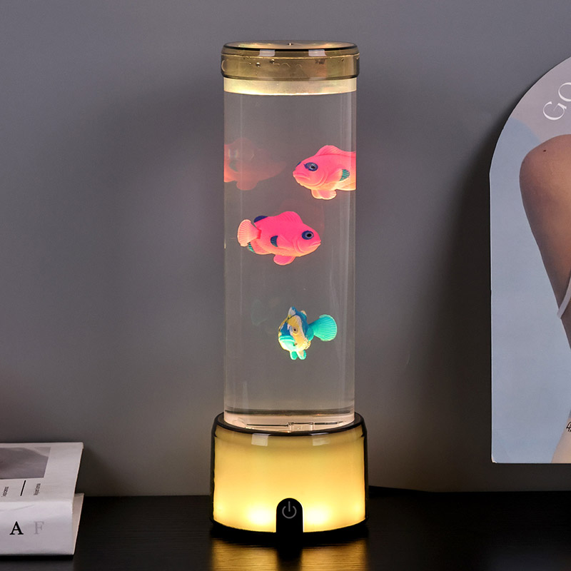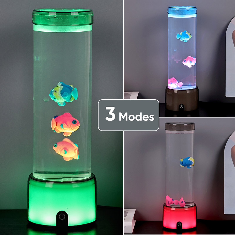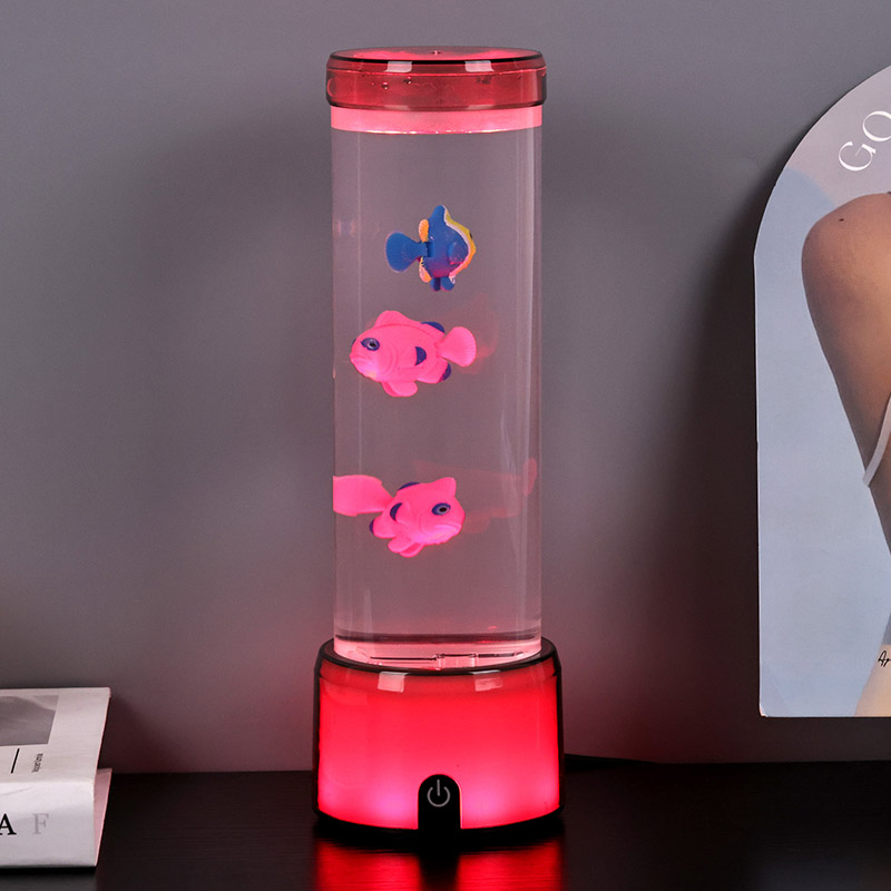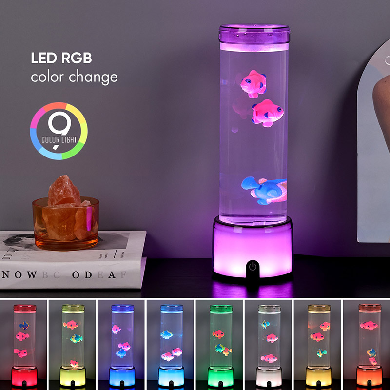 Balık lambasının tabanı, birden fazla renk ışık yayan, tüm lamba gövdesinin renkli bir etki sunmasını sağlayan RGB renk değiştiren şeffaf bir tabanla donatılmıştır. Anahtarı açtıktan sonraki renk