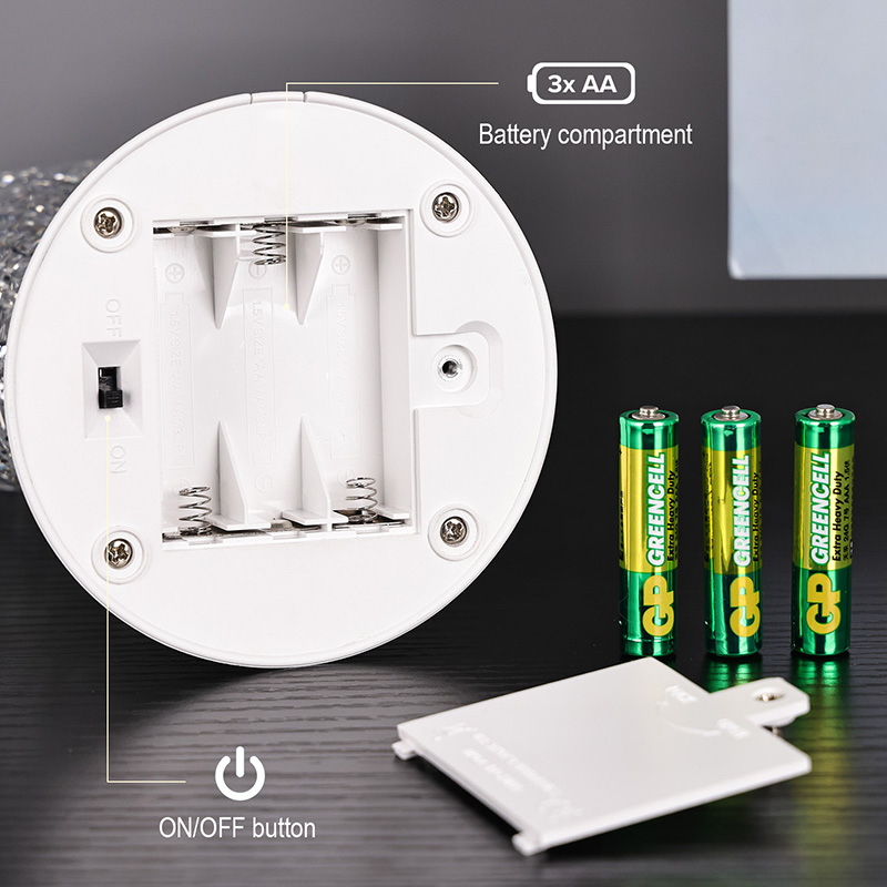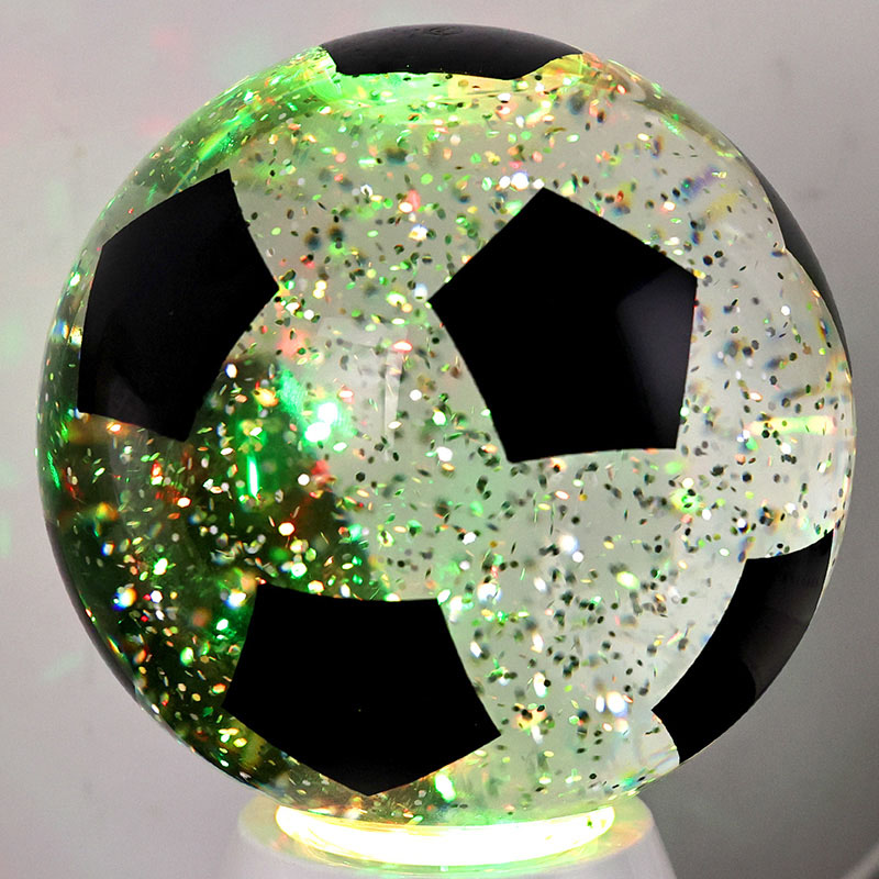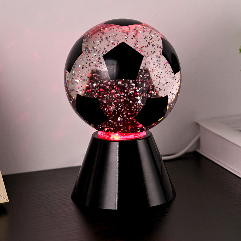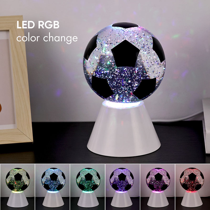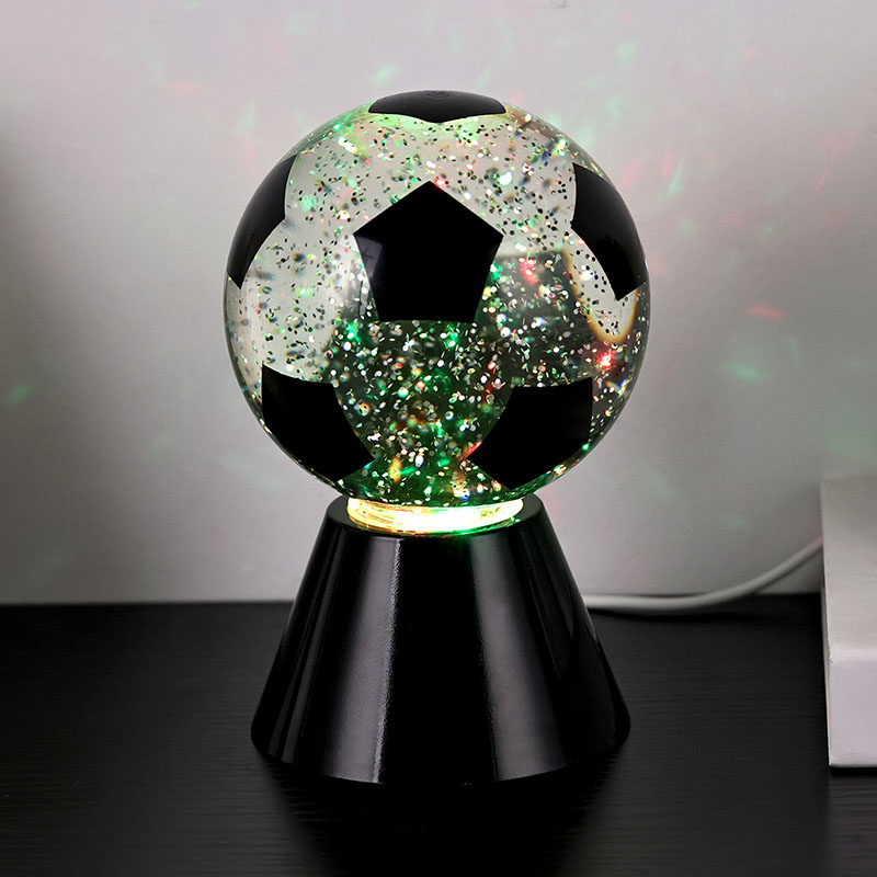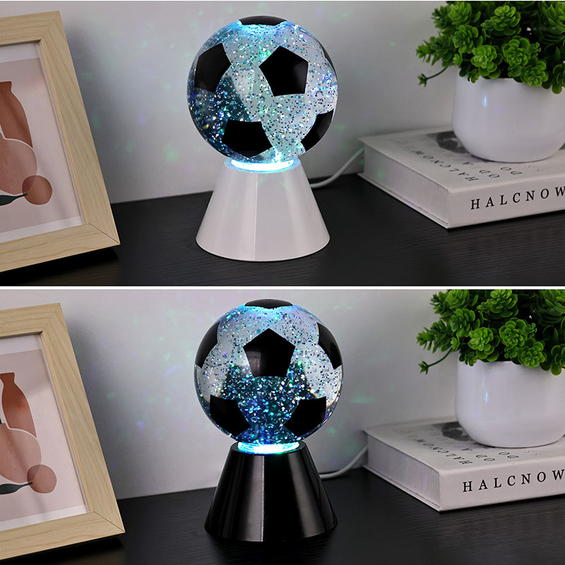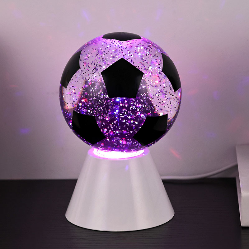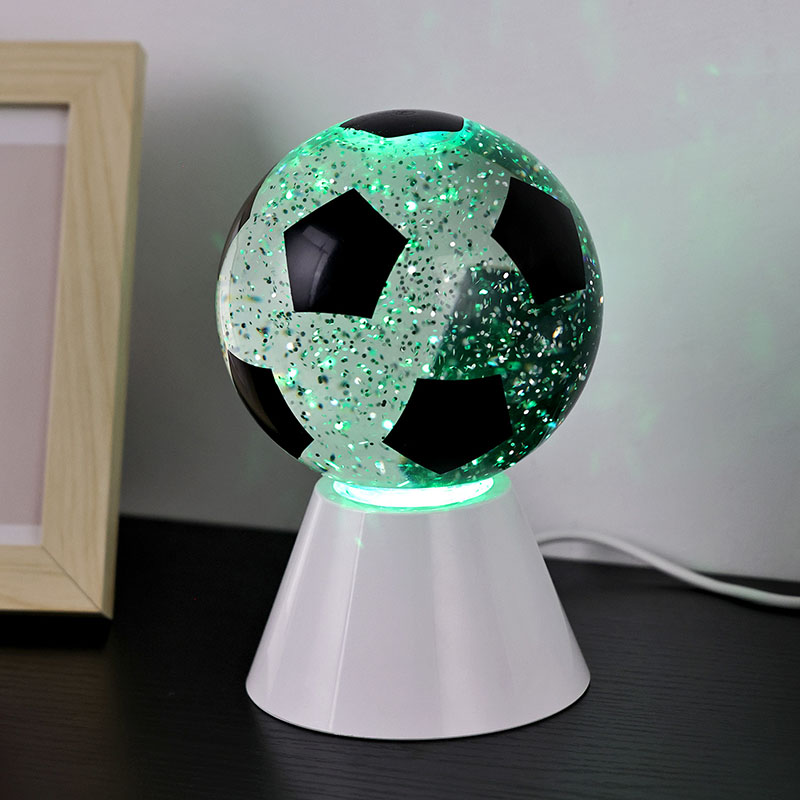 Beyaz + LED renk değişimiKüresel hediye ışığı bir üst cam ve bir plastik tabandan oluşur. Cam yüzeye çeşitli renklerde basılabilen futbol desenleri basılmıştır. Futbol Gölgelikli Gece Işığı'nın ana özelliği, pulların bulunduğu kürenin içinde sıvı bulunmasıdır. Anahtar açıldıktan sonra yerleşik küçük motor çalışmaya başlar ve camın içindeki sıvı düzensiz bir şekilde hareket eder. Aynı zamanda Football Shade'li Gece Işığı'nın alt ışığı değişmeye başlıyor ki bu çok güzel. Futbol Gölgeli Gece Lambası esas olarak odalarda, oturma odalarında, otel odalarında ve diğer yerlerde iç dekorasyonda kullanılır. Ürün ayrıca USB şarjı ile birlikte gelir ve 3AAA pil kullanabilir.