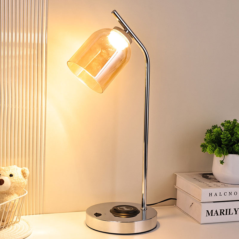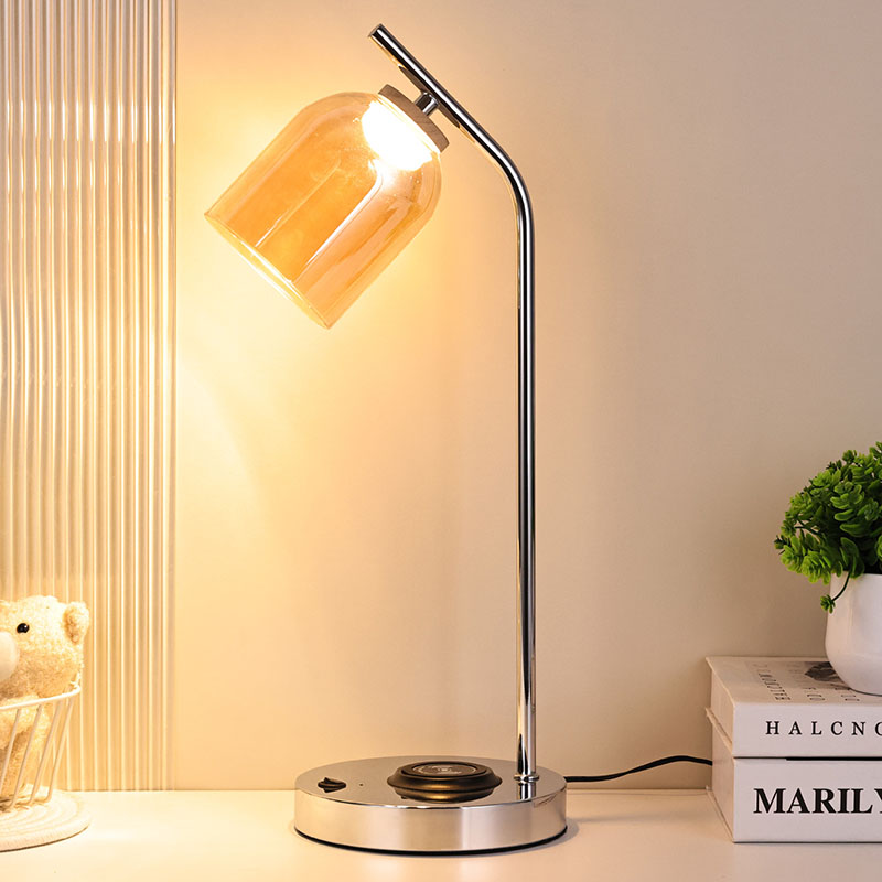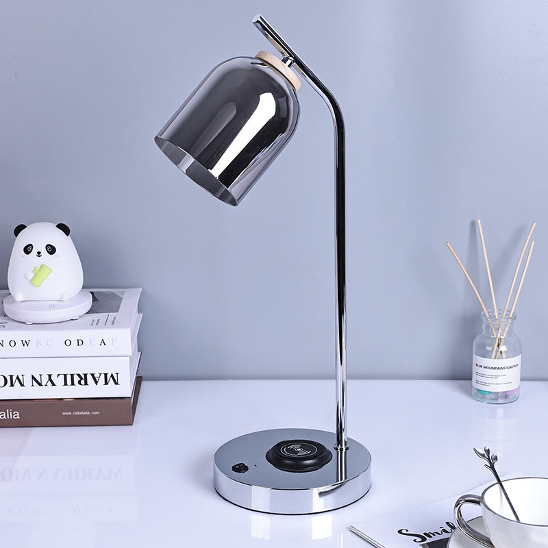 QI cam gölgeli masa lambası QI kablosuz sertifikasına sahiptir. Tabana 5V1A kablosuz telefon şarj cihazı