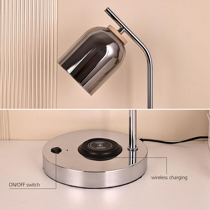 Size kolaylık sağlamak için, cam gölgeli QI ledli masa lambası aynı zamanda metal bir kablosuz cep telefonu şarj tabanıyla donatılmıştır. Sıkıcı takma işlemlerine gerek kalmadan, hızlı şarj için kablosuz şarj özellikli telefonu nazikçe tabana yerleştirmeniz yeterlidir. Kablosuz şarj teknolojisi yalnızca kullanım rahatlığını artırmakla kalmaz, aynı zamanda dağınık kablo sorununu da ortadan kaldırarak masaüstünüzü daha düzenli ve güzel hale getirir. Ayrıca metal taban, şarj işleminin emniyetini ve güvenilirliğini sağlayan iyi bir ısı dağıtma performansına sahiptir.
