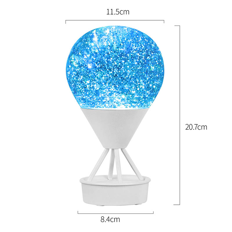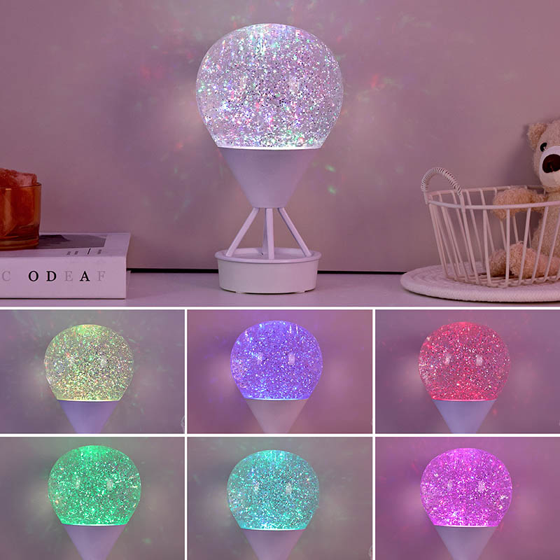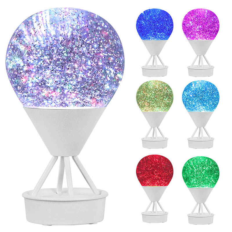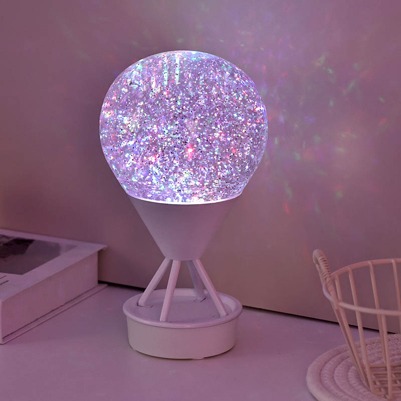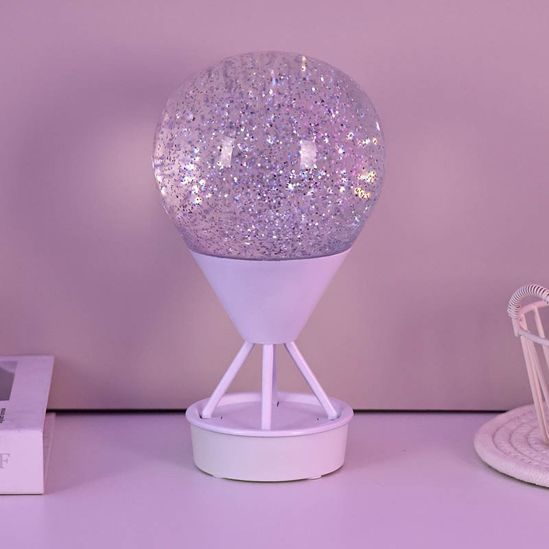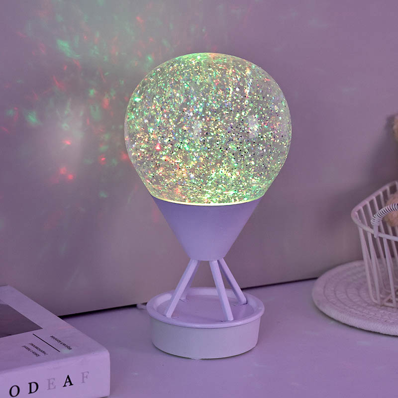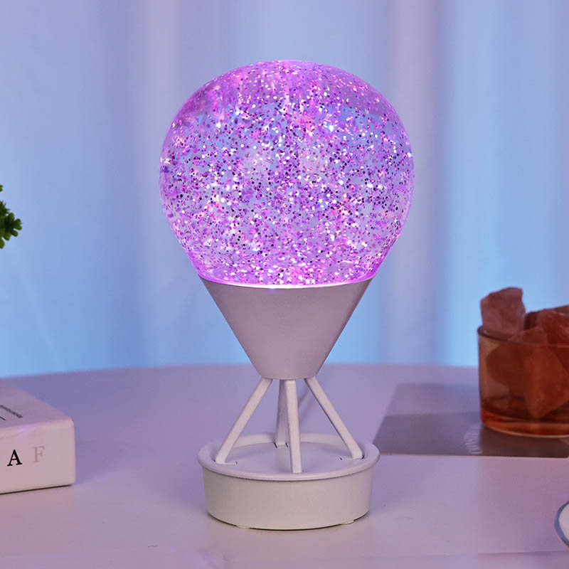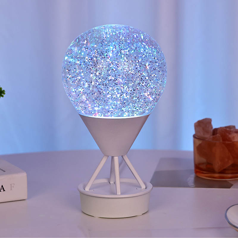 Bu gece ışığı oturma odanıza aksan parçası olarak yerleştirin. Işıltılı küre ve renkli ışıklar, yaşam alanınıza benzersiz ve şık bir element ekleyecektir.