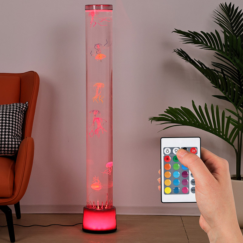 39.5*39.5*113 CMRGB Yer Denizanası Lambası, modern teknolojiyi doğal estetikle harmanlayan yaratıcı bir ev dekorasyonu parçasıdır. Rüya gibi ışık ve gölge efektleri ve gerçekçi denizanası tasarımıyla iç mekanlara gizemli ve dingin bir okyanus havası katıyor. Tüm tasarım, yüksek şeffaflıkta akrilikten üretilmiştir ve minyatür bir su altı dünyasını andıran ince ve zarif bir şekle sahiptir ve sizi sanki denizin derinliklerindeymişsiniz gibi içine çeker.