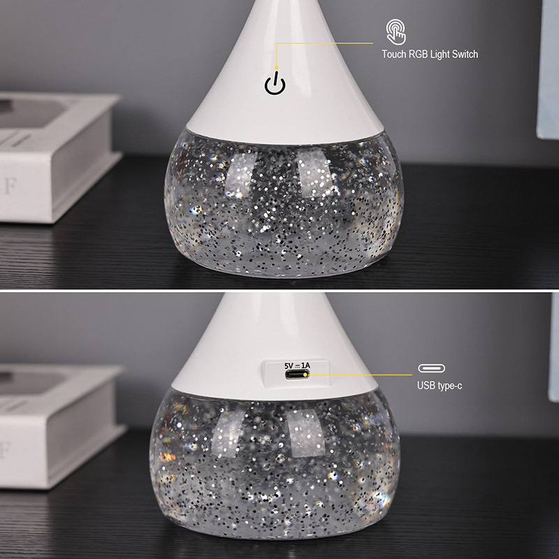 Pürüzsüz Plastik Yüzeyli dekor sönük lambanın arkasında ışık sağlamak için 5v1a güç girişi vardır ve yüzeyde dokunmatik kontrol bulunur.