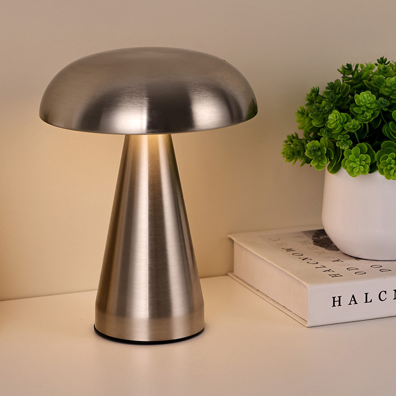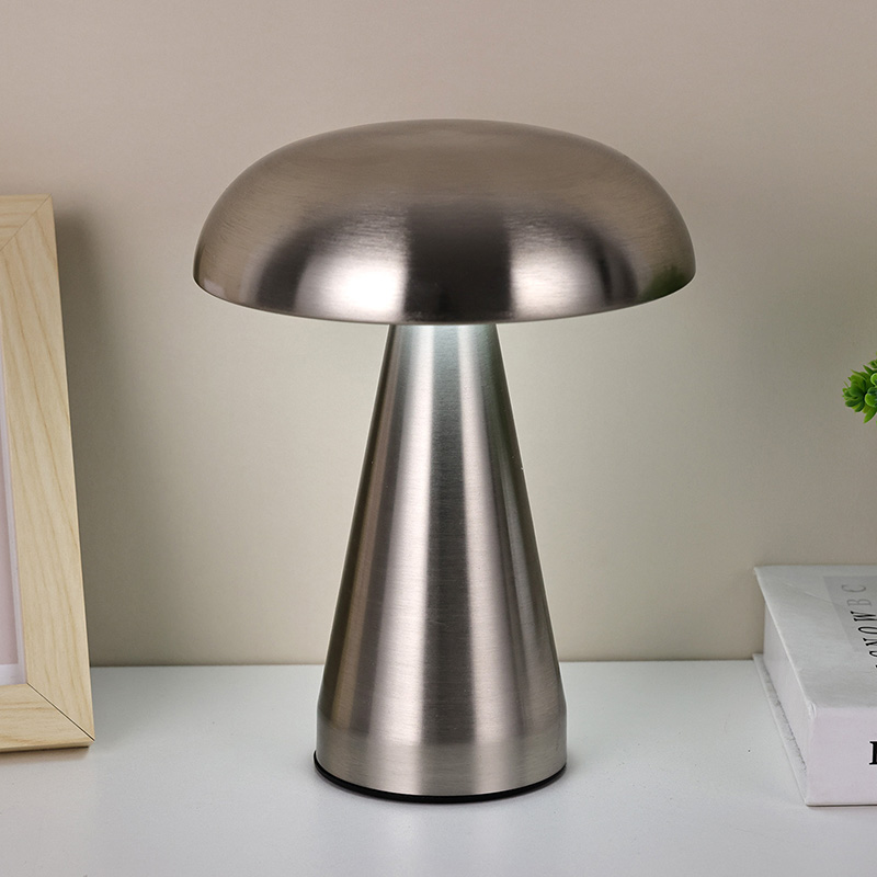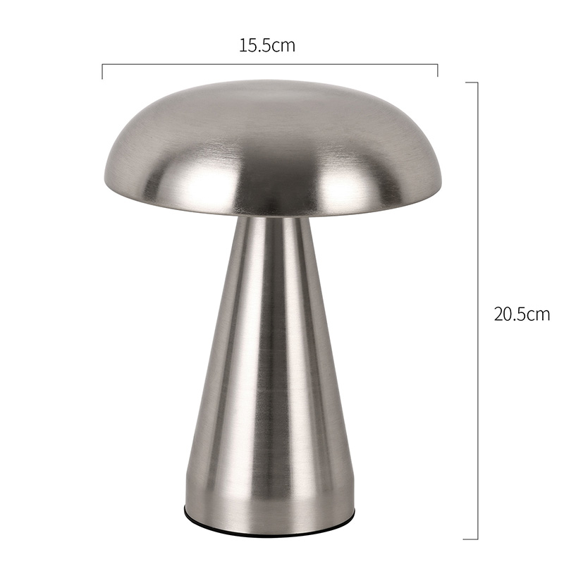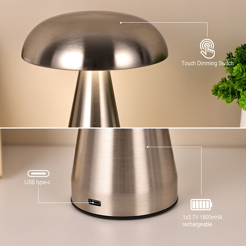 Mantar Gölgeli Tüm Metal Led Masa Lambası, tabanın altında şarj edilebilir usb tip-c'ye sahiptir, içinde 1800ma pili şarj edebilir