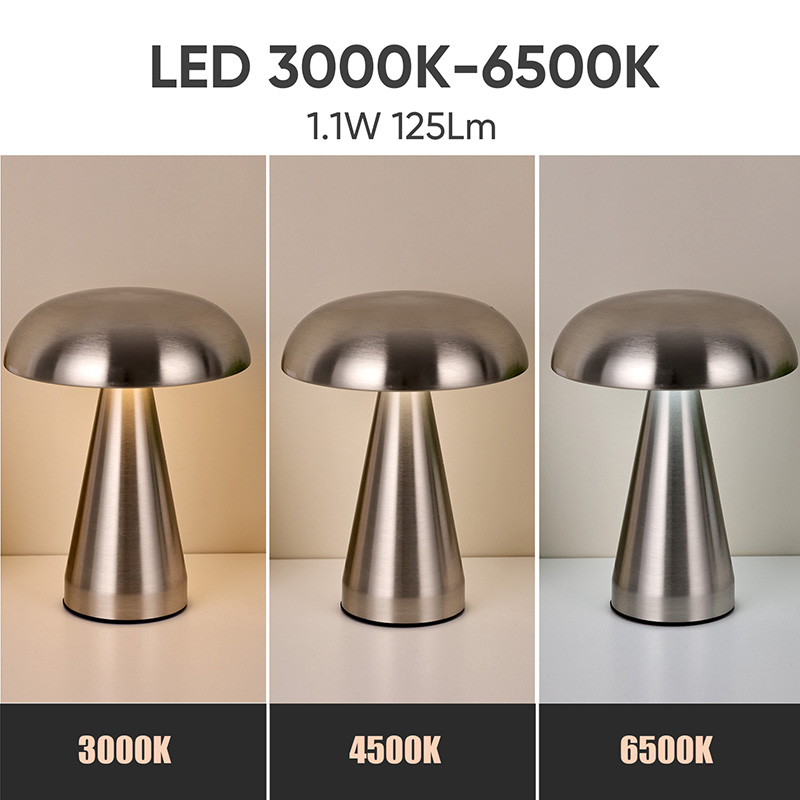 Mantar Gölgeli Tüm Metal Led Masa Lambası 3000K (sıcak ışık) 4500K (doğal ışık) 6500K (beyaz ışık) 3 ışık rengi değişimine sahiptir